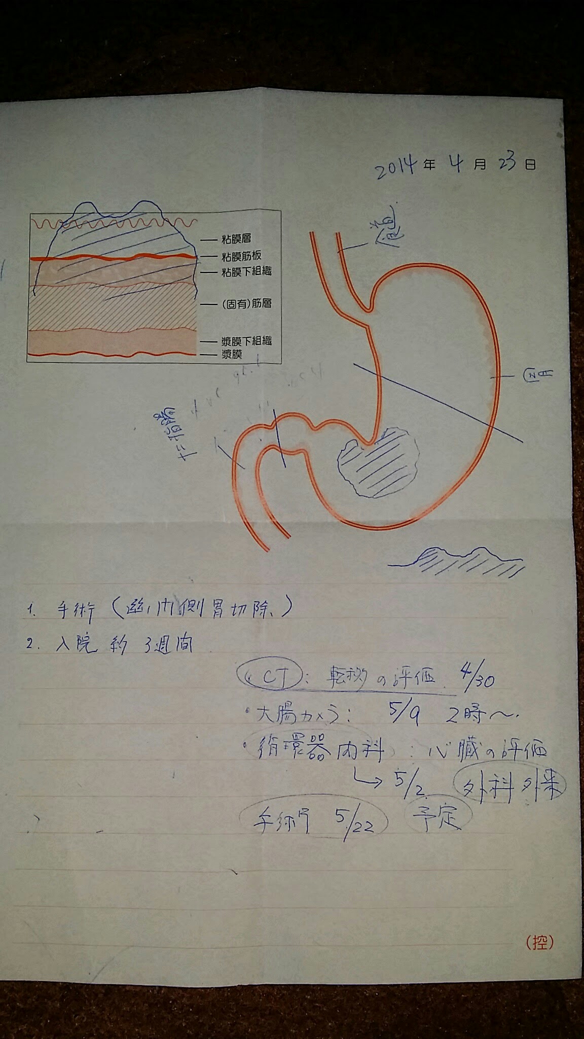 お父さんが検査の結果、胃ガンでした
